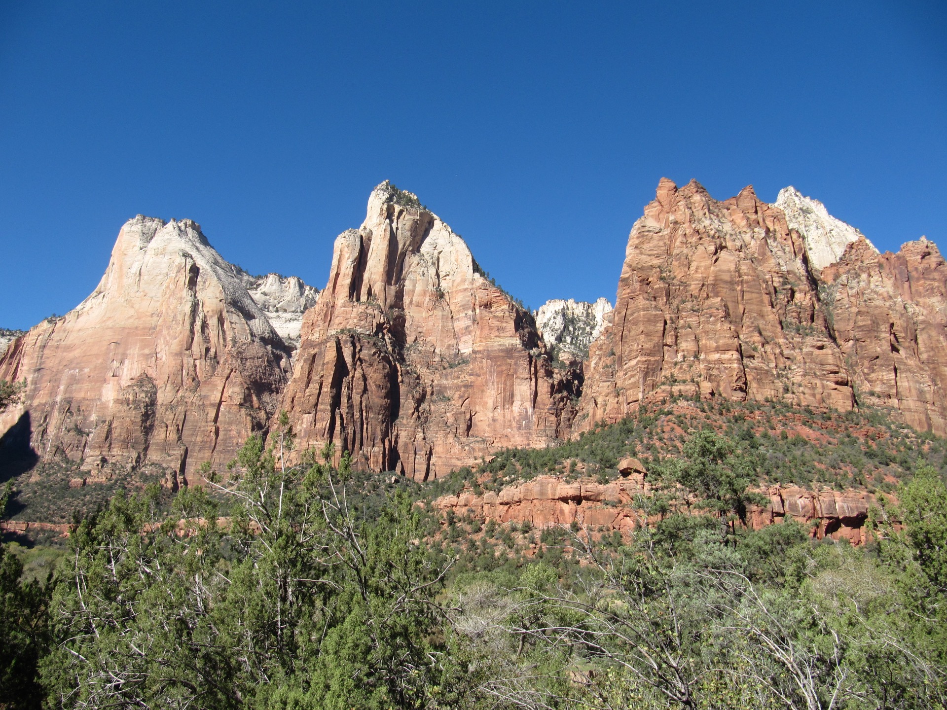 Arguably my favourite place in Zion, and a place I visited and remember from last time I visited in December of 2013, The Patriarchs are 3 tall rock figures that stand across the road and river from the overlook. They are commanding figures, standing next to each other, reflecting the sun in their iron rich rock. Decide for yourself, but I find them mesmerising.